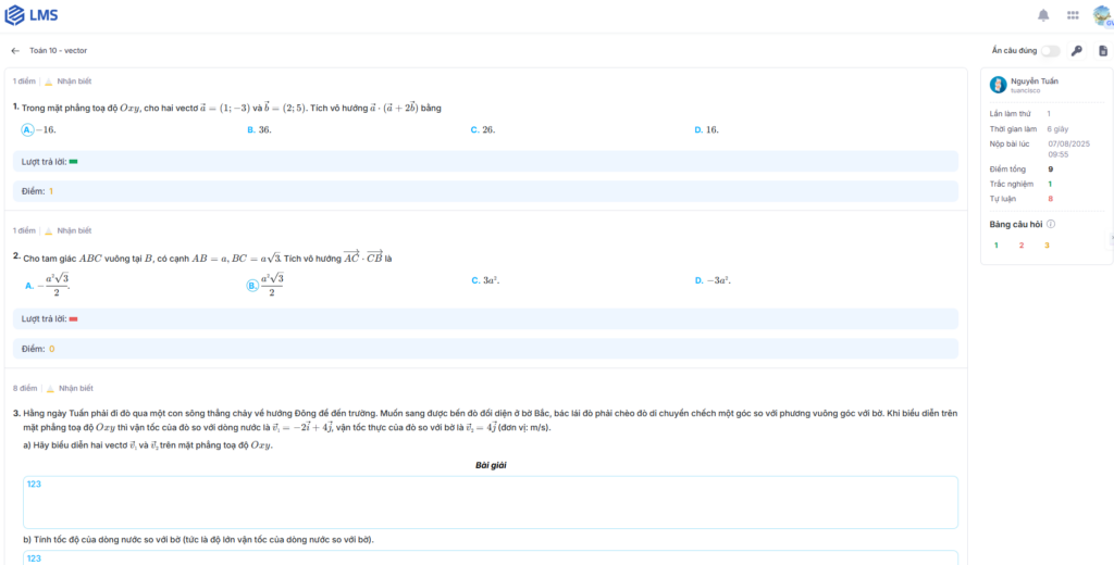 Hình 6: Màn hình xem chi tiết kết quả làm bài của học sinh theo lượt làm