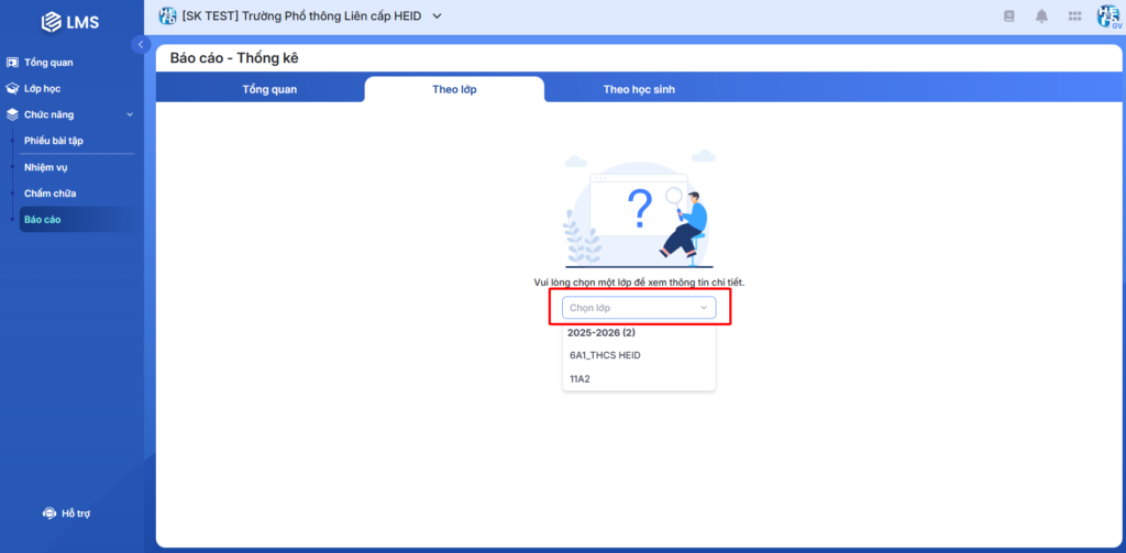 Hình 1: Màn hình Theo lớp của Báo cáo – Thống kê