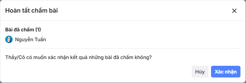 Bước 2.3: Giáo viên chọn Hoàn tất. Sau đó chọn “Xác nhận” để hoàn tất chấm bài