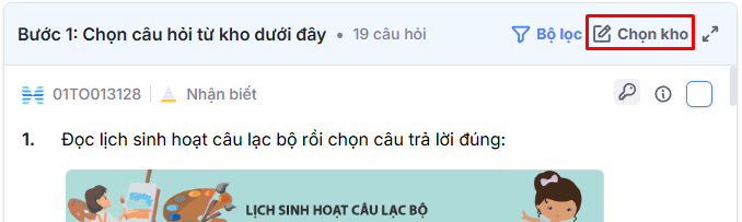 Bước 2.2: Giáo viên chọn câu hỏi từ kho đã chọn