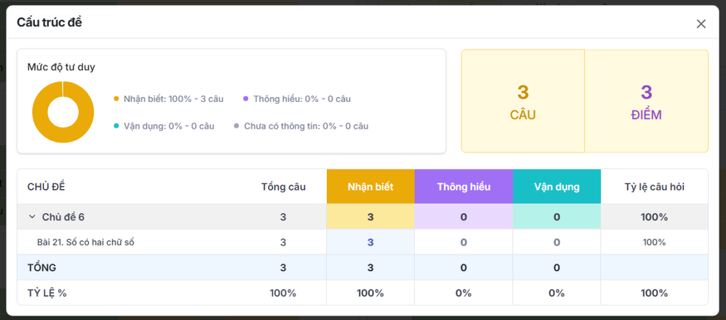 Bước 2.3: Giáo viên có thể Xem cấu trúc đề kiểm tra hiện tại.