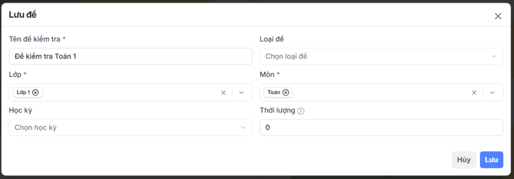 Bước 2.8: Giáo viên bấm Lưu để lưu đề kiểm tra.