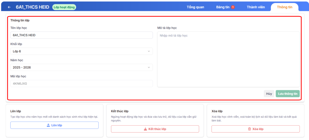 Trang chủ / Danh mục hướng dẫn / Xem và chỉnh sửa thông tin lớp học