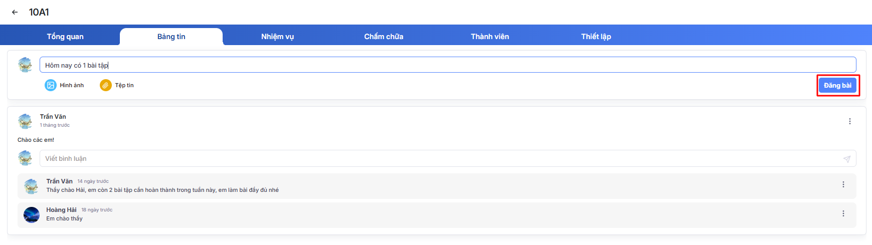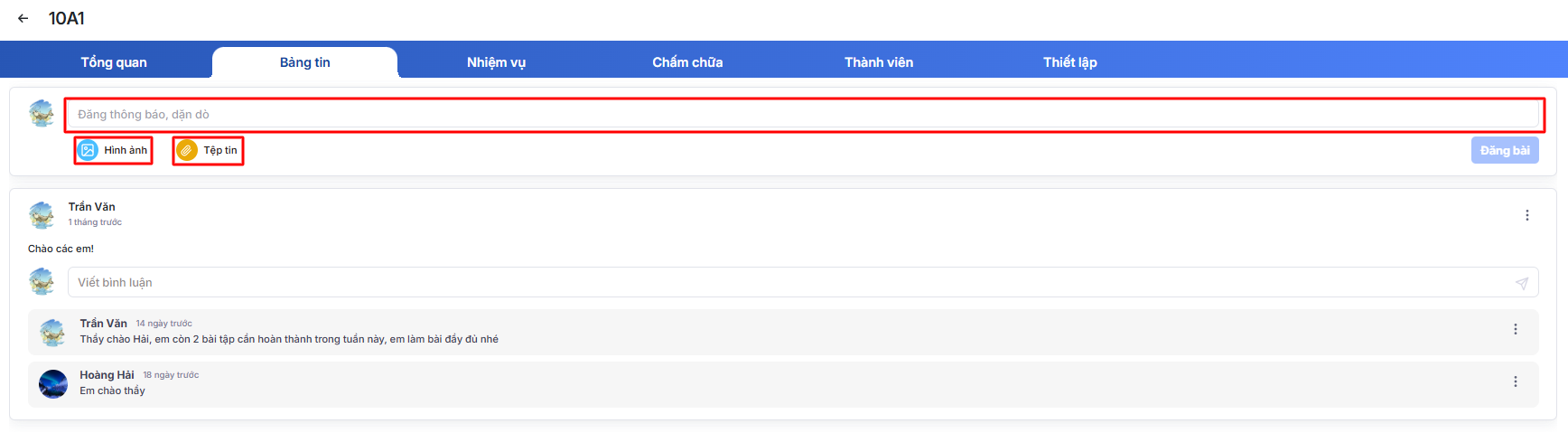Thầy/cô cũng có thể đăng tải Hình ảnh, Tệp tin cho thông báo.