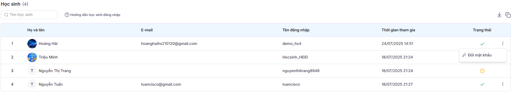 Bước 4.1: Giáo viên chọn mục Thành viên, bấm chọn biểu tượng 3 chấm và chọn Đổi mật khẩu.